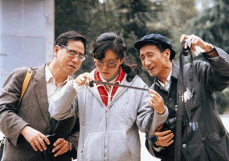 (02-6)李仲魁(右)、张玲(中)、乔文涛(左)在看于二届年会期间拍摄的底片。