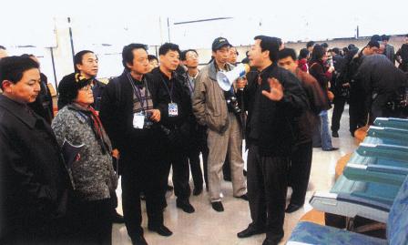 (09-10)中国新闻摄影学会办公室主任刘允颖(左二)等会议代表,在中国航天救生研究所参观采访该所民品生产情况。