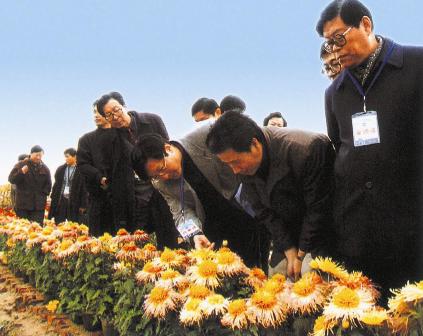 (09-11)代表们参观采访神农园花卉生产基地。右一为安徽省委宣传部副部长张育、右二为新华社摄影部主任徐祖根、右三为人民日报深圳记者站站长胡谋。