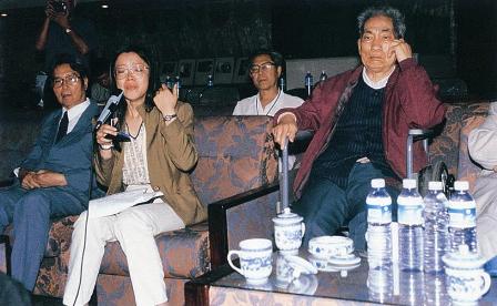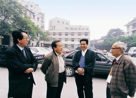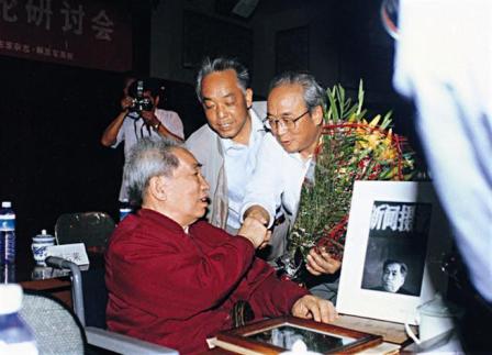 (13-2)葛新德向蒋老致以亲切问候。中为杨克,后为高风,后右王少华。