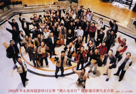人民日报华东分社从1996年起每年召开一次新闻摄影研讨会。这是2003年10月23日于绍兴召开的2003年华东新闻摄影研讨会的全体代表合影。