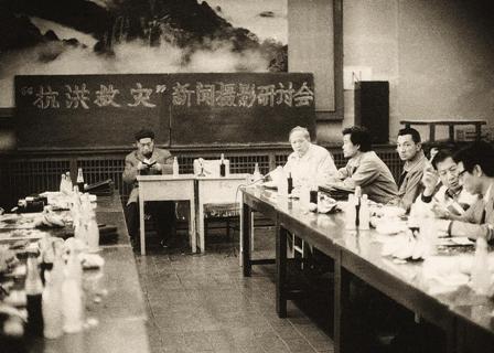 (10-1)1991年10月“中国抗洪救灾” 新闻摄影研讨会在新华社举行。蒋齐生主持会议。许必华等同志在会上发言。 梁文骏摄