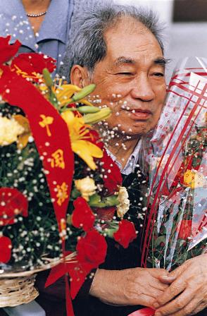 (13-3)刘虎山、王振民代表北京日报给蒋老献花。