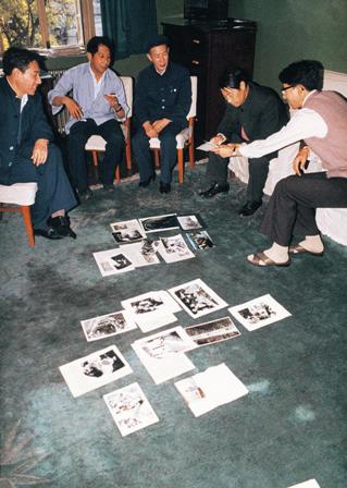 首都新闻摄影界与摄影艺术界1992年5月5日在北京召开纪念毛泽东《在延安文艺座谈会上的讲话》座谈会,会议主题是“继往开来,纪录时代”。著名摄影家罗光达(左二)、石少华(左三)、蒋齐生(左四)、吴印咸(左五)等出席会议并发表讲话。左一为山西省文联党组书记谷威。