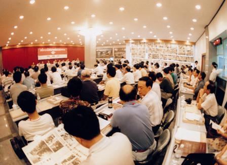 (04-1)第四届全国报纸总编辑新闻摄影研讨会1996年8月1日至7日在哈尔滨市举行。中国新闻摄影学会会长范敬宜在研讨会上作题为《努力提高摄影队伍素质,把我国新闻摄影事业推向新的水平》的主题报告。中国记协副主席王立行参加了会议。 刘洪山提供