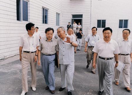 (04-2)中共黑龙江省委书记岳岐峰(左三)陪同范敬宜等同志步入第四届全国报纸总编辑新闻摄影研讨会会场。刘洪山提供