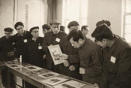 1984年2月21日至24日,第三届全国新闻摄影作品评选会议在华北油田举行。评委(左起)赵德苏、成卫东、刘志伟、张世勋、吴启华、王鸿依等在认真工作。