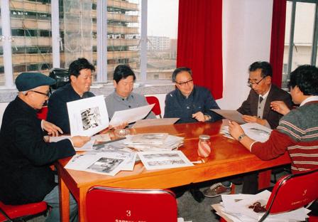 (04-4)在上海评选会议上。马昭运(左一)、胡明(左二)、蒋铎(左三)、高毅(右二)、成卫东(右一)。梁文骏摄