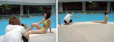 夏天拍摄泳装照时,应该尽量拍出明亮的气氛才好。不过很不幸,这次拍摄的时候,空中遍布云朵,因此只有使用一些小技巧来让画面看起来明亮一些了。