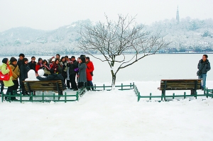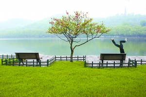 “每次来西湖,看到好玩的,我都会拍下来。时间一长,发现我在这棵桃树边已经拍了不少照片。这组图片是从西湖的四季景色、景色中的人等方面考虑的。桃树是很有杭州风格的,是这组图片的亮点之一,还有就是其中的各色人等?!保ㄗ檎展?幅)