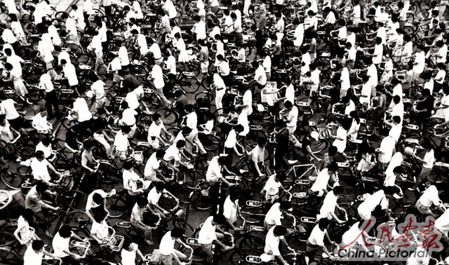 那时,每日清晨的上班高峰时段,成千上万辆自行车一齐涌上城市街头,蔚为壮观。此种车阵,在世界范围都属罕见,故有外国人称之为“世界第八大奇观”?;崞镒孕谐?,拥有一辆属于自己的自行车,成为众多孩子的梦想;在动人心弦的爱情故事里,男孩带着女孩在风中快乐地骑行,成为那个时代中最富标志性的情节,也构成许多人真实的回忆;“永久”、“凤凰”牌自行车因持久耐用而享誉全国,常是富裕的家庭里新娘得意的嫁妆。自行车,作为当时中国普通家庭一件非常适用的交通工具,也是生活消费品中较为昂贵的“大件”,成为一个时代整体记忆里不可磨灭的一部分,也造就了国人一种特殊的自行车情结。