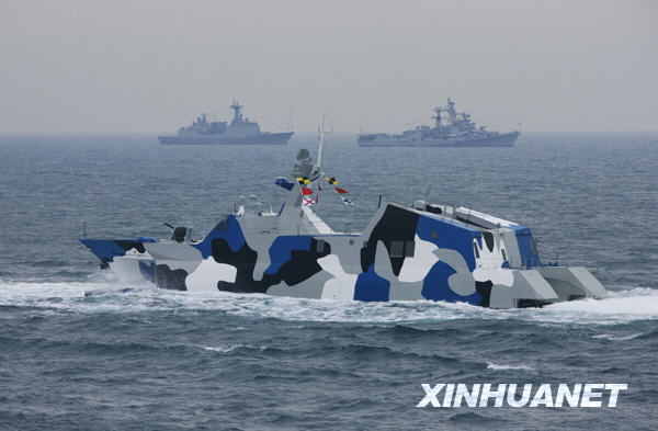 4月23日,中国海军新型导弹快艇接受检阅。新华社记者查春明摄