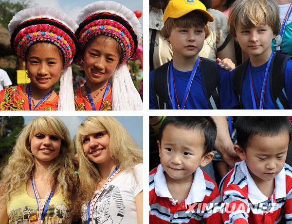 5月1日,两对外国双胞胎在云南墨江欢度双胞胎节。新华社记者 蔺以光 摄