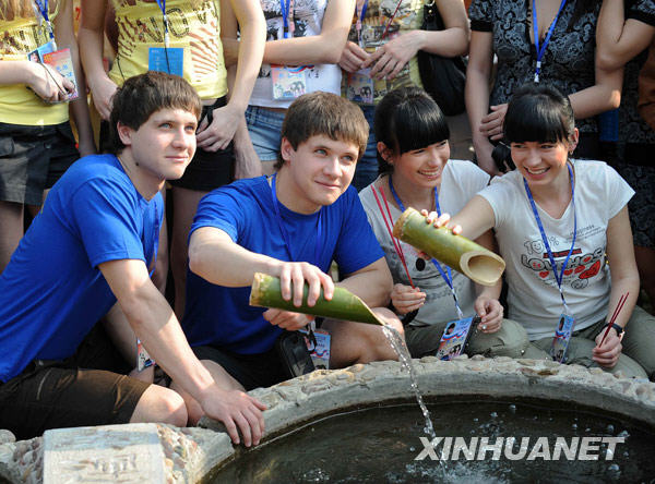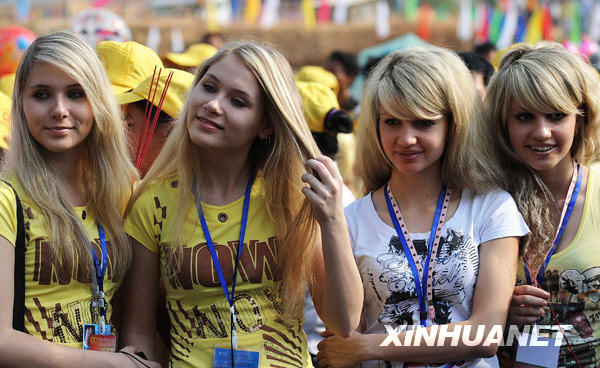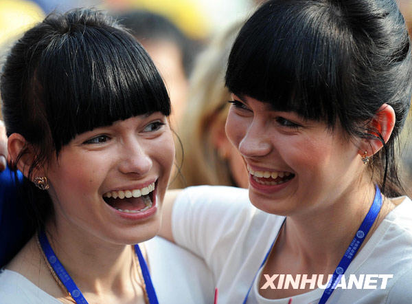 5月1日,一对来自俄罗斯的双胞胎姐妹参加双胞胎节。新华社记者 蔺以光 摄