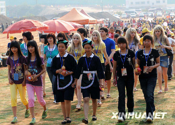 当日,为期3天的第五届中国墨江国际双胞胎节在云南省墨江哈尼族自治县开幕,来自中国、美国、俄罗斯等国家和地区的近千对双胞胎和三胞胎前来参加,其中年龄最大的70多岁,最小的只有8个月。新华社记者 蔺以光 摄