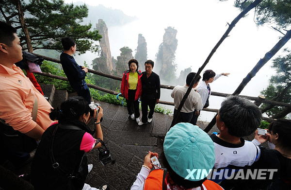 游客在张家界国家森林公园天子山景区欣赏云海奇观(5月15日摄)。新华社记者 龙弘涛 摄