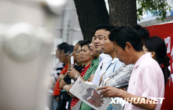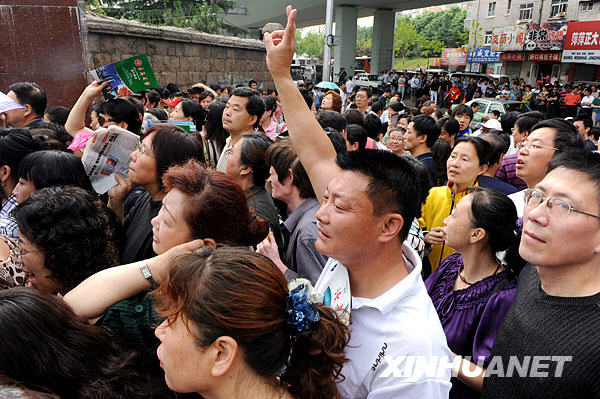 6月7日,在汇文中学考点,家长在鼓励即将入场的考生。当日,2009年全国普通高校招生全国统一考试开始进行。 新华社记者邢广利摄