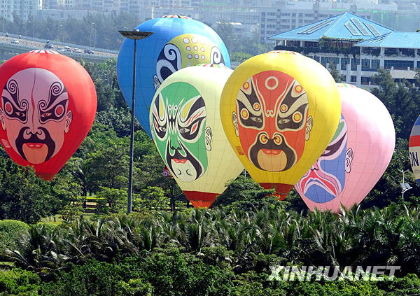 6月12日,热气球运动员在??谑型蚵淘敖斜硌萸暗淖急腹ぷ鳌5比?,2009第三届海口热气球节暨H1中国热气球挑战赛在??诶∧?,共有25支热气球队参加此次为期四天的比赛。新华社记者赵颖全摄