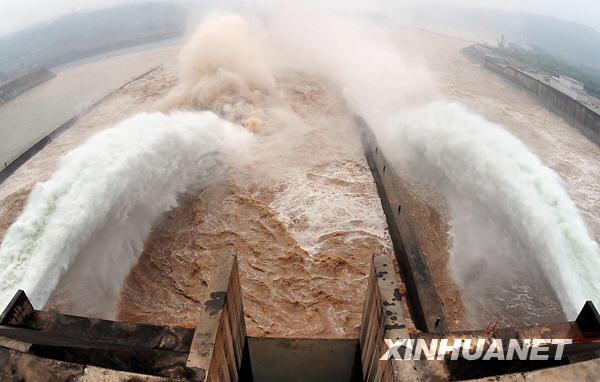 当日,黄河小浪底调水调沙生产活动正式实施,这次调水调沙持续时间为18天。自2002年以来,黄河小浪底水库每年都要进行调水调沙。目前,黄河下游河道行洪能力已由调水调沙前的1800立方米每秒提高到了4000立方米每秒,下游河道主河槽河底高程平均下降一米以上。新华社记者 王颂摄