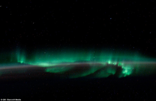 在两极上空大气层以上数十公里的太空,极光现象仍能被清楚地观测到。红色、绿色的极光闪烁着怪异的微弱绿光,好似鬼怪之光,给人以寒冷的感觉。在绕地轨道上的宇航员用长曝光相机和35毫米胶片拍摄下了这些怪异的图片。