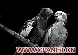 家养鸟儿拍不到飞翔的状态,但却可以从容抓拍各种有趣的生活姿态,如接吻、调情、对话等,同样可以拍出鸟的情趣。拍摄鸟儿和拍摄人像一样,眼睛是心灵的窗口,要拍好鸟儿的表情就要时刻关注鸟儿的眼神,拍出了眼神,就拍出了生气。图2为在家里从容抓拍的鸟的情趣。