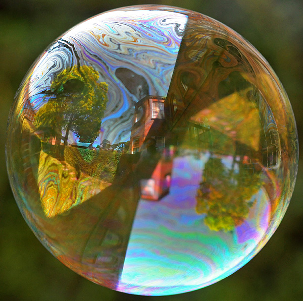 2009年7月12日消息,肥皂泡在阳光的照耀下会显出七彩的颜色,还会反射出耀眼的光芒。英国摄影师Richard Heeks多年来就一直着迷于拍摄各种环境下肥皂泡所反射出来的景象以及如同幻觉的美丽。