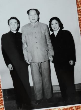 吕老夫妇与主席的合影(此照片放大版挂在吕老家中进门处)