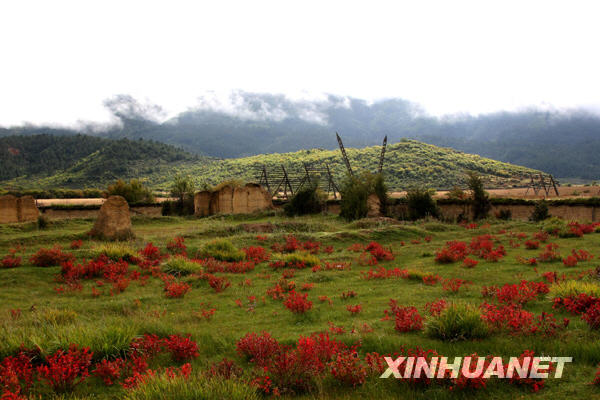 狼毒花盛开的香格里拉草甸牧?。?007年9月摄)。新华社记者陈海宁摄