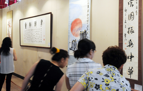 7. 出席《人民画报》创刊60周年纪念活动的书画界人士在参观《人民画报》藏画展。