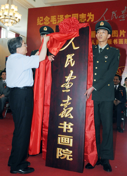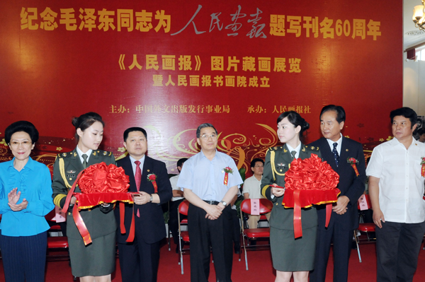 《人民画报》以热烈而简朴的方式,在中国人民革命军事博物舘举行庆?;疃?,纪念毛泽东同志为《人民画报》题写刊名60周年,与此同时,《人民画报》图片藏画展也在这里开幕,人民画报书画院揭牌成立。