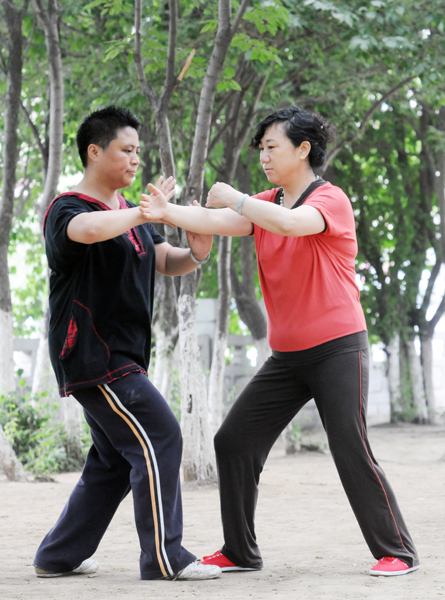 2. 绿树下,居民练中华太极拳。