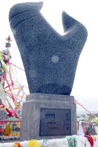 刻有十世班禅大师和胡耀邦总书记题写的藏汉文的“黄河源头”四个大字的牛头碑。