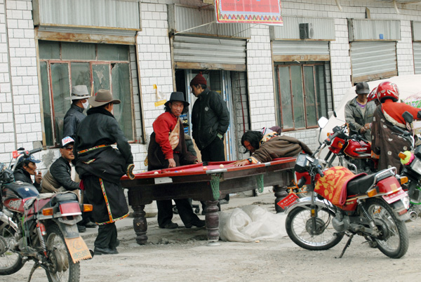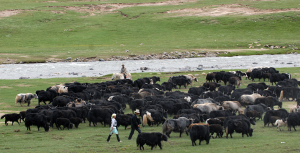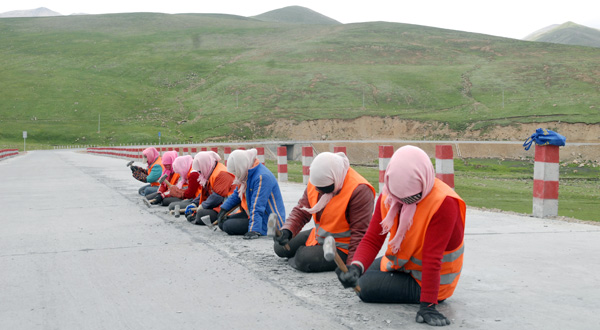 玛多县是典型的牧业县,放牧期间藏族牧民生活在牧场中;为改善牧民生活状况,人民政府为牧民修建了过冬的住房。这是黄河乡正在修建牧民过冬住房的情景。