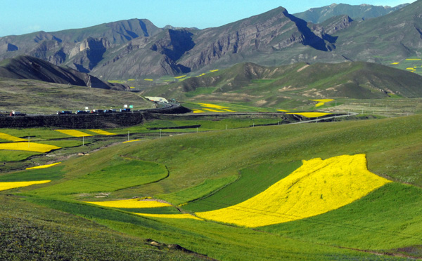 玛多县黄河乡人民政府所在地,相传是格萨尔赛马称王的起点。受尽苦难的格萨尔12岁时,与另一部落首领儿子骑马比赛,以非凡的勇气与智慧取得了胜利,获得了王位。这是格萨尔赛马称王起跑点的遗址。