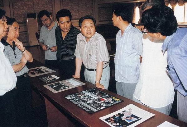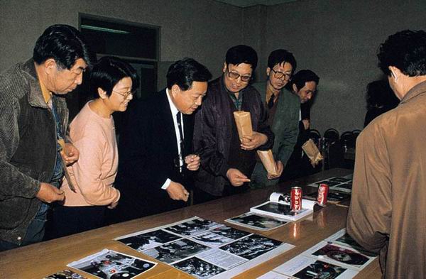 “改革之光”新闻摄影精品赛评选工作于1998年6月20日在北京举行,评委主任范敬宜在与评委们交换评定大奖的意见。