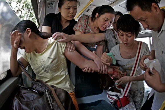 ??2010年6月24日上午9:40,来自四川的女孩阿婷因家庭矛盾一时冲动,在武汉市563路公交车上悄悄用水果刀割腕轻生,满手的鲜血把车上乘客吓坏了。随之,人们迅速展开一场自发的救援行动:有的按压止血,有的联系医疗急救站,有的到站旁药房买来绷带,强行替阿婷包扎好伤口。接着,闻讯赶到警察和急救人员将阿婷紧急送往武汉市十一医院抢救后脱险。作者在参与救助的同时,拍摄了这感人的一幕。