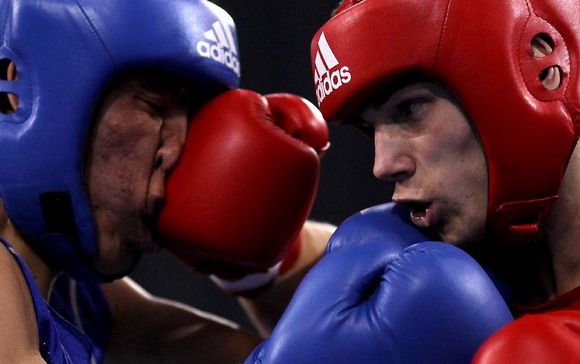??? 2010年9月1日,首届世界武搏运动会拳击比赛男子64公斤级半决赛双方激战正酣.