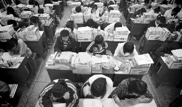 而1977年恢复高考当年,全国共有570万考生大军一下子涌进了考场,而被录取的只有27.3万人,录取比例29:1,是竞争最激烈的一年?;厮葜泄呖祭?,永远是一个没有止境的圈:考试结束铃更是下一年高考的预备铃。