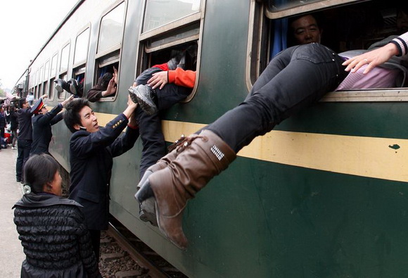 ??? 2010年1月25日,东莞东火车站,几名火车站工作人员帮助乘客爬窗进车。该图片在网上发表后引发各种反响。就在大家对此做法褒贬不一时,广铁集团作出决定,免除东莞东站原站长刘小平、原书记廖栩珍职务。免职的消息被各大门户网站转载后,90%以上的网友都为被免的站长、书记喊冤,赞扬帮旅客爬车窗上车的列车员。此事,被网友们称为“东莞爬窗门”。