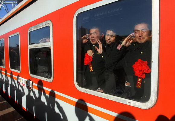 ??? 初冬时节,又到一年退伍时。全国各地退伍老兵采用多种方式告别火热的营房和朝夕相处的战友,表达浓浓的情意。