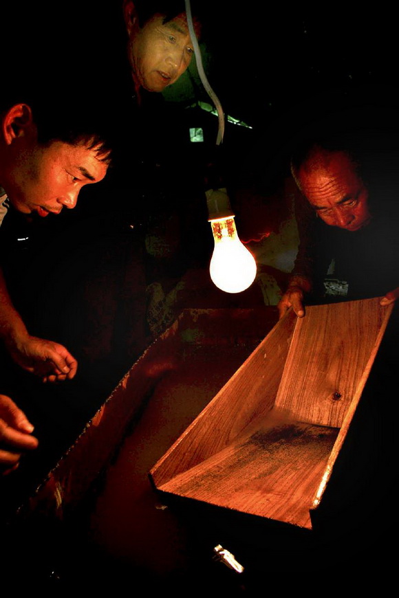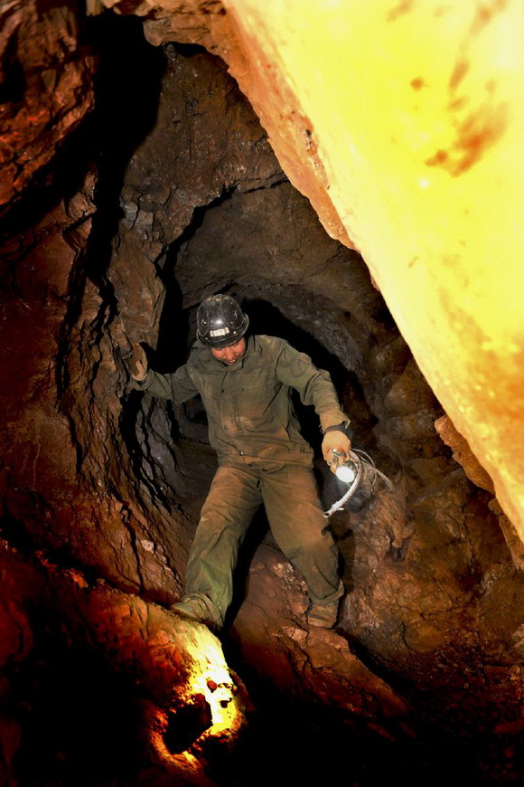 ??? 2010年1月30日, 山西省运城市。 技术人员在刚刚开出的矿井里查看矿脉,这是决定矿洞走向的关键工序之一。