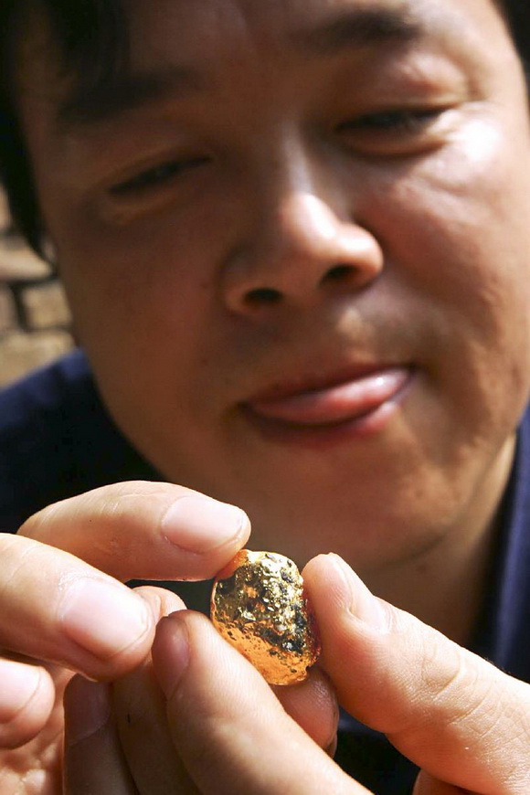 2008年10月13日,陕西省潼关县。一块小小的金子饱含发财梦想。