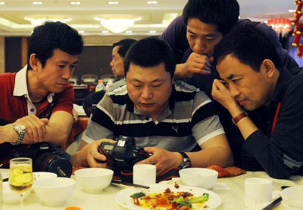 2、参加“聚焦历史文化古城阆中”各位摄影名家在午饭后进行作品交流。