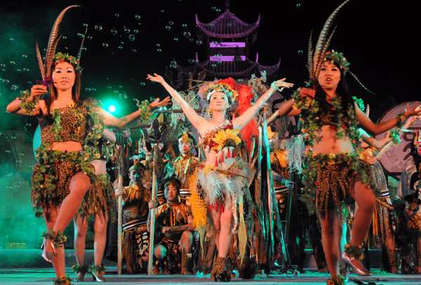 16、《我在阆中等你》文艺晚会剧照——舞蹈《梦回华胥》。相传,阆中是神话故事里中华始母华胥之故乡。阆中市文化和旅游局以文艺的形式演绎当地悠久的文明史,精心排练一台以反映当地各个历史时期文化文艺晚会,为前来旅游的各地客人演出。