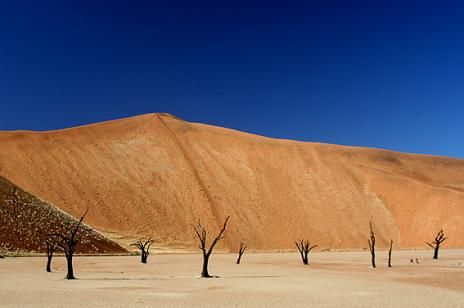 位于纳米布-诺克卢福国家公园里的这片沙岩地形周围耸立着世界上最高的沙丘,大约高达350米