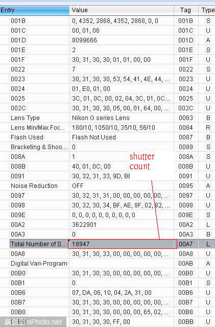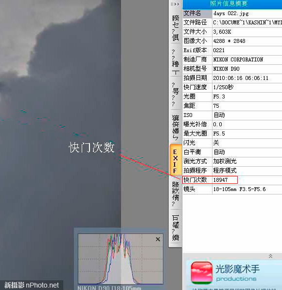 大家可在笔记本电脑上安装这些软件,然后用二手相机上拍一张照片,就可以在EXIF中看到快门使用次数了。