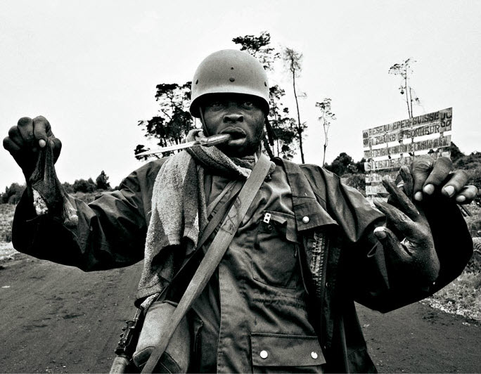我真的很恨这张照片,它展现了人类最丑恶的一面。我经常问我自己,“为什么选择这份工作?”答案是,我希望展现人类最美好的一面,也希望展现人类最丑恶的一面。每当你卷入冲突之中,都能看到人类的斑斑劣迹。我们需要见证我们所做过的,以便能告诉下一代我们曾经犯下的错误。这名嘴里叼着刀子的家伙是和我们一样的人类,而我们记录了人类能做出什么事,这就是重点。如果有一天我不再用自己的照片进行这种记录,我会放弃自己的工作去开一家餐馆。