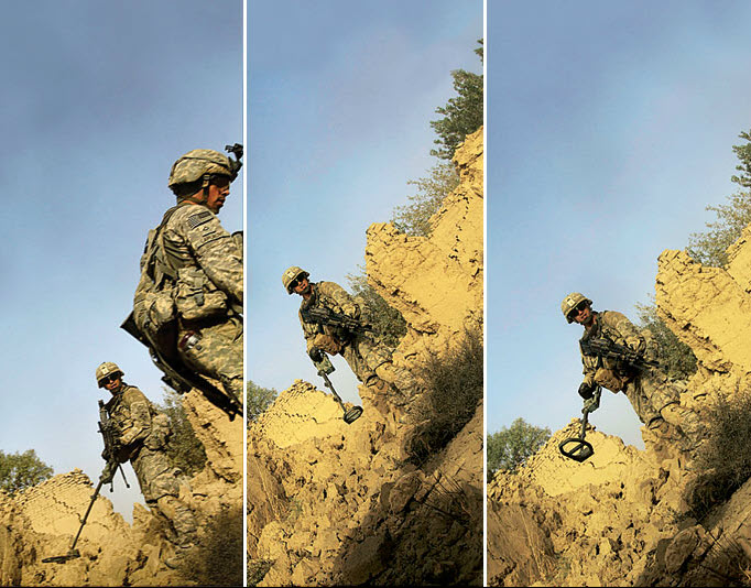 在阿富汗待了一个多月后,我第一次踩上地雷。当时我们正排成一行前进,我走在第三个。在我落脚的时候,突然听到一声金属的脆响,然后我就飞到了天上。我很清楚发生了什么。当士兵们把我从杀伤半径中拖出来时,我拍下了这几张照片。我身边的人死的死伤的伤,而我记录下了这一切。我必须记录下这一切。我旁边的士兵们大声呼喊着医生,我知道我的腿没了,我接通了给妻子的卫星电话告诉她不要担心。当我回到医院,才感觉到疼痛。事后的感染差点几次要了我的命。