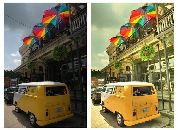 1.建立新图层,填充淡黄色,叠加模式,数值247,240,197