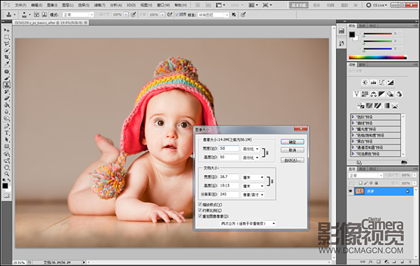 进入Photoshop主界面,照片尺寸不同,在图库网站的售价也不同。首先保存文件,将其命名为“大尺寸”,格式JPEG。然后选择“图像大小”。将像素单位设置为百分比,值设置为50,另存一个“中尺寸”文件。